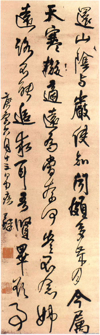 王鐸《臨王獻(xiàn)之敬祖、鄱陽(yáng)軸》 縱173cm 橫50cm 其他不詳