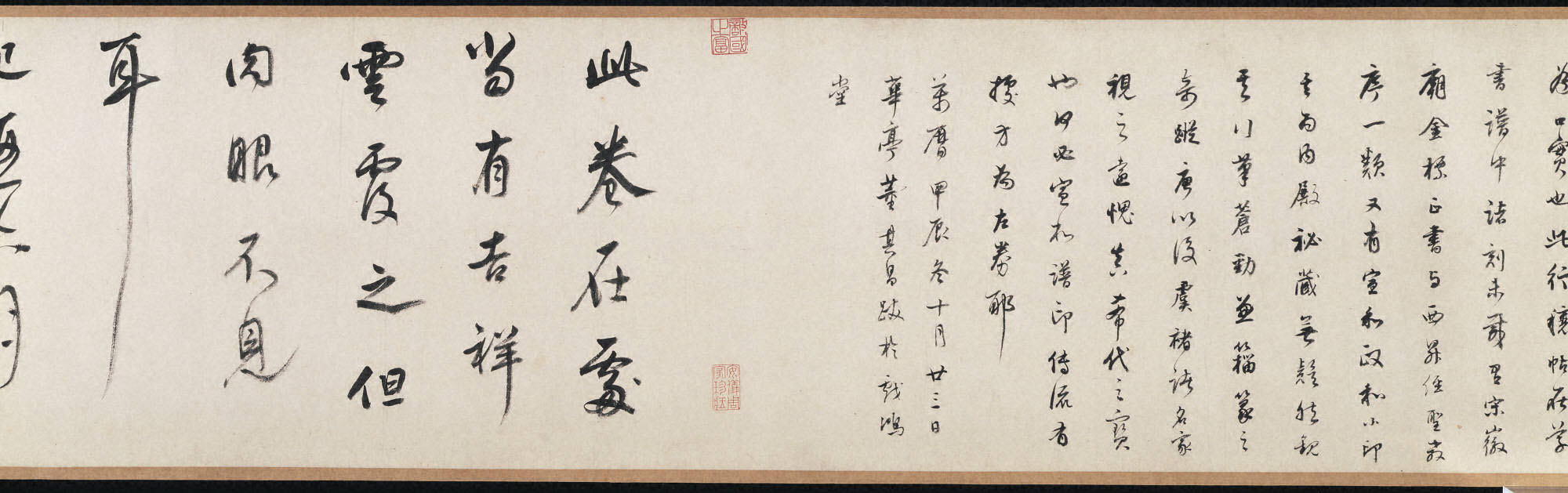 王羲之《行穰帖》局部(摹本) 24.4×8.9cm 美國普林斯頓大學美術(shù)館藏 王羲之《行穰帖》全本(摹本) 30×372cm 美國普林斯頓大學美術(shù)館藏請關(guān)注本站公眾號,下載高清圖片