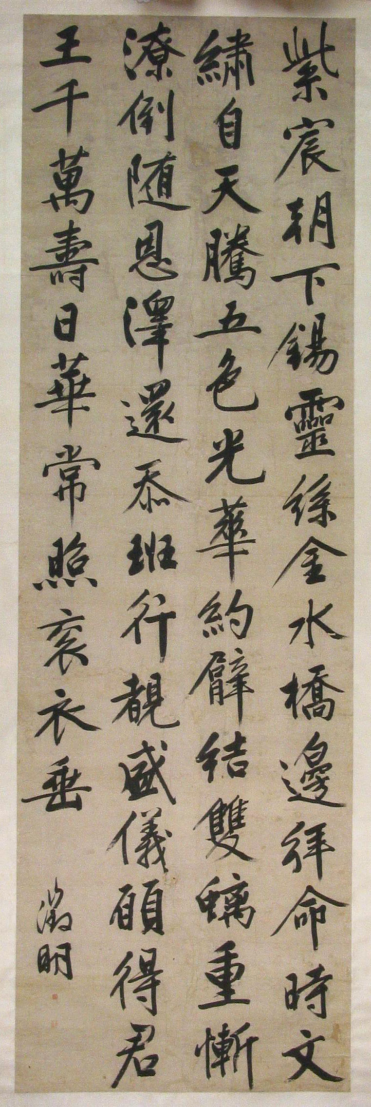 文徵明《行書賜長壽綵縷七律詩軸》 紙本行書 315.5×98cm 遼寧省博物館藏