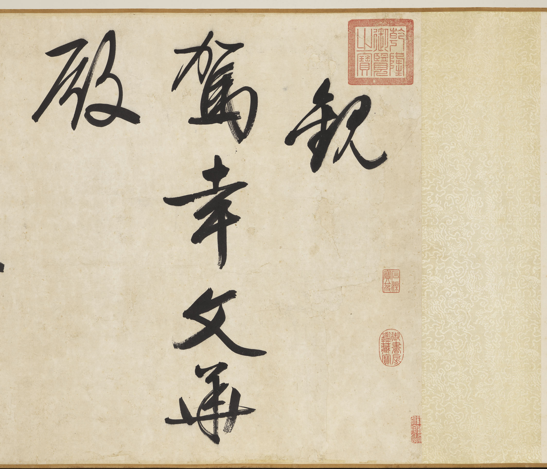 此卷自書《觀駕幸文華殿》《恭候大駕還自南郊》七言頌圣詩兩首。款署嘉靖壬寅(1542年)三月,時年七十三歲。