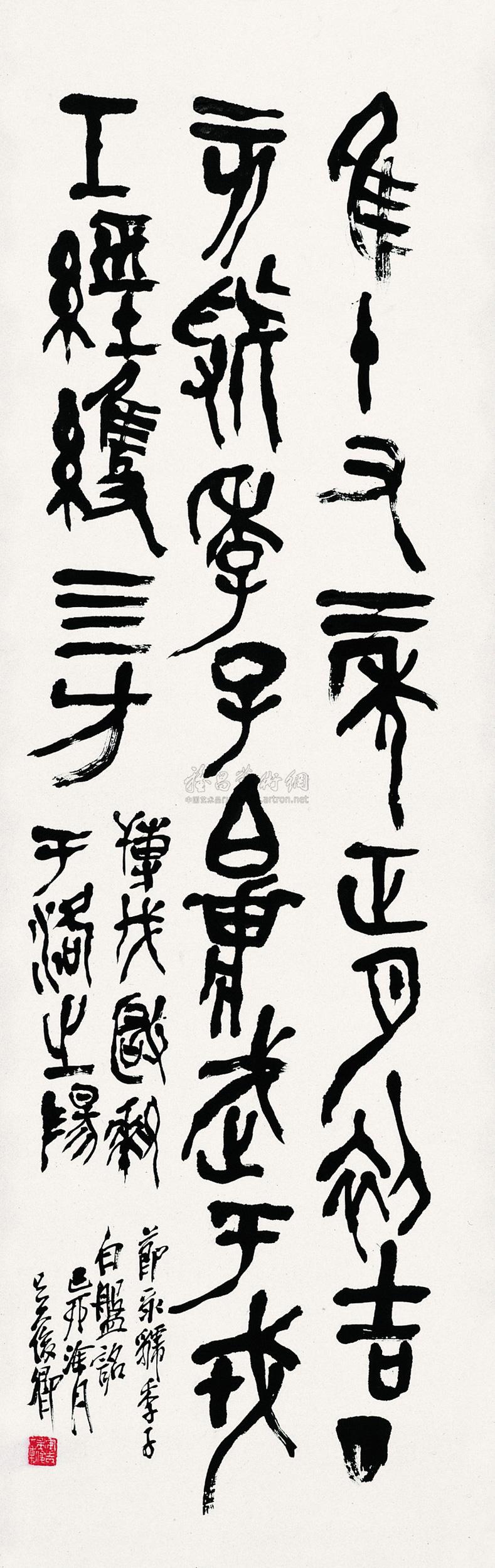 清代 吳昌碩 節(jié)臨《虢季子白盤》 121.6×39.2cm 己酉(1909年)作 (中國嘉德2004秋季拍賣會中國近現(xiàn)代書畫 )