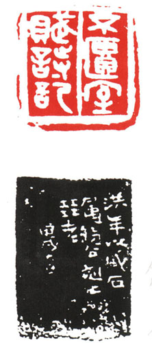 大廠印款亦極別致,陰刻單刀款逸筆草草,頗近六朝磚文,陽刻造像,古拙天真,皆有情趣。