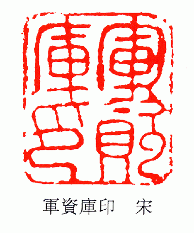 宋代的官印,字形清晰,易于辨認,從其疊篆格式看,雖較唐代進了一步,但卻遠未達到金元時期疊繞環(huán)曲,不留空隙的地步。這種官印本身就具有較強的藝術氣質,加上當時鑄印的匠師們以此為職業(yè),在無數(shù)次的制作中,必然要發(fā)現(xiàn)盤曲環(huán)繞的文字的藝術美(其實任何一種形式都有其內在的藝術魅力,關鍵在于作者是不是善于去發(fā)掘和展示)再綜合自己的藝思浸潤進去,使美的東西得以升華,更有一些職位較低的官印,如“軍資庫印”等篆字極少盤曲,線條圓潤渾厚、自然流暢,甚為可愛。因此宋代官印所具有的篆法自然流暢,講究線條豐潤圓通的獨特風貌,蘊藏著無數(shù)工匠不自覺的審美情趣和追求,蘊藏著他們在長期實踐中迸發(fā)出的藝術火花。在中國篆刻藝術史上,它完全能據(jù)占據(jù)一席之地。