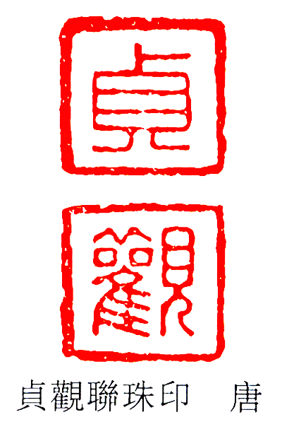 宮庭在書畫作品上鈐印,應(yīng)該說始于唐而盛于宋。唐太宗曾自書“貞觀”二字的聯(lián)珠朱文印,命玉工刻成后,專門蓋在內(nèi)府珍藏的書畫典籍上。之后,唐玄宗有“開元"長方印專門用作鑒藏名跡的記號。張彥遠(yuǎn)《書法要錄》引竇皋《述書賦》載:“貞觀、開元,文止于二”。