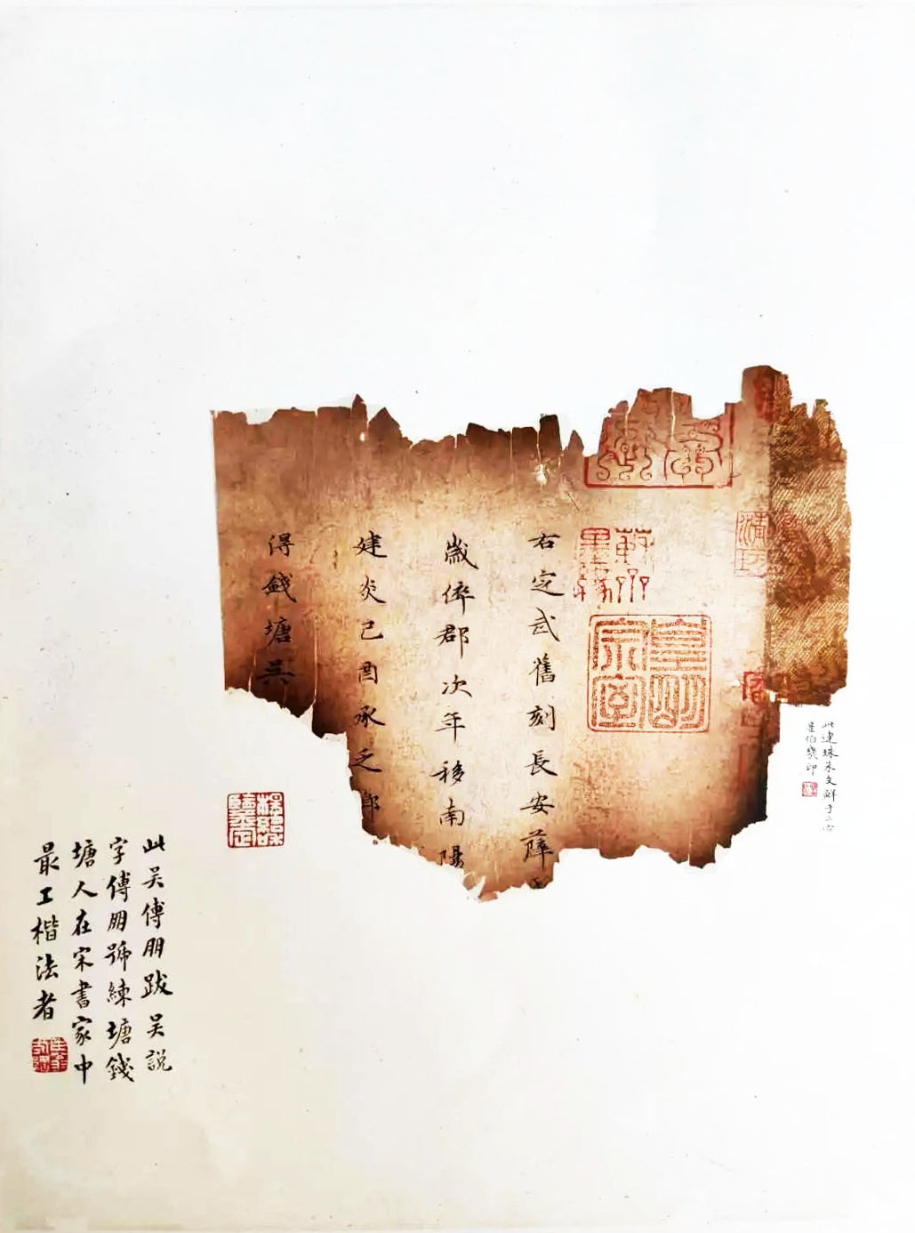 此帖在《蘭亭序》拓本后,有宋吳說、朱敦儒,元錢選、鮮于樞等跋,繼之為自九月 五日至十月七日趙孟頫所書十三跋,以及柯九思跋其得《蘭亭序》佳本而所書二跋,書法 精妙外,在了解趙孟頫的書法觀方面,亦成為極其重要的書論。乾隆年間,該件歸譚組綬 所藏,譚氏歿后,遇天災(zāi)遭燒損,殘存如現(xiàn)狀。后流傳至日本,為高島菊次郎所藏,并捐贈于日本東京國立博物館藏。2006年春見于上海博物館《中日書法珍品展》。