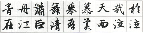 值得強(qiáng)調(diào)的是捺腳,出鋒時一定要有腕部的外翻動作,這樣寫出來才顯得豐滿挺勻。