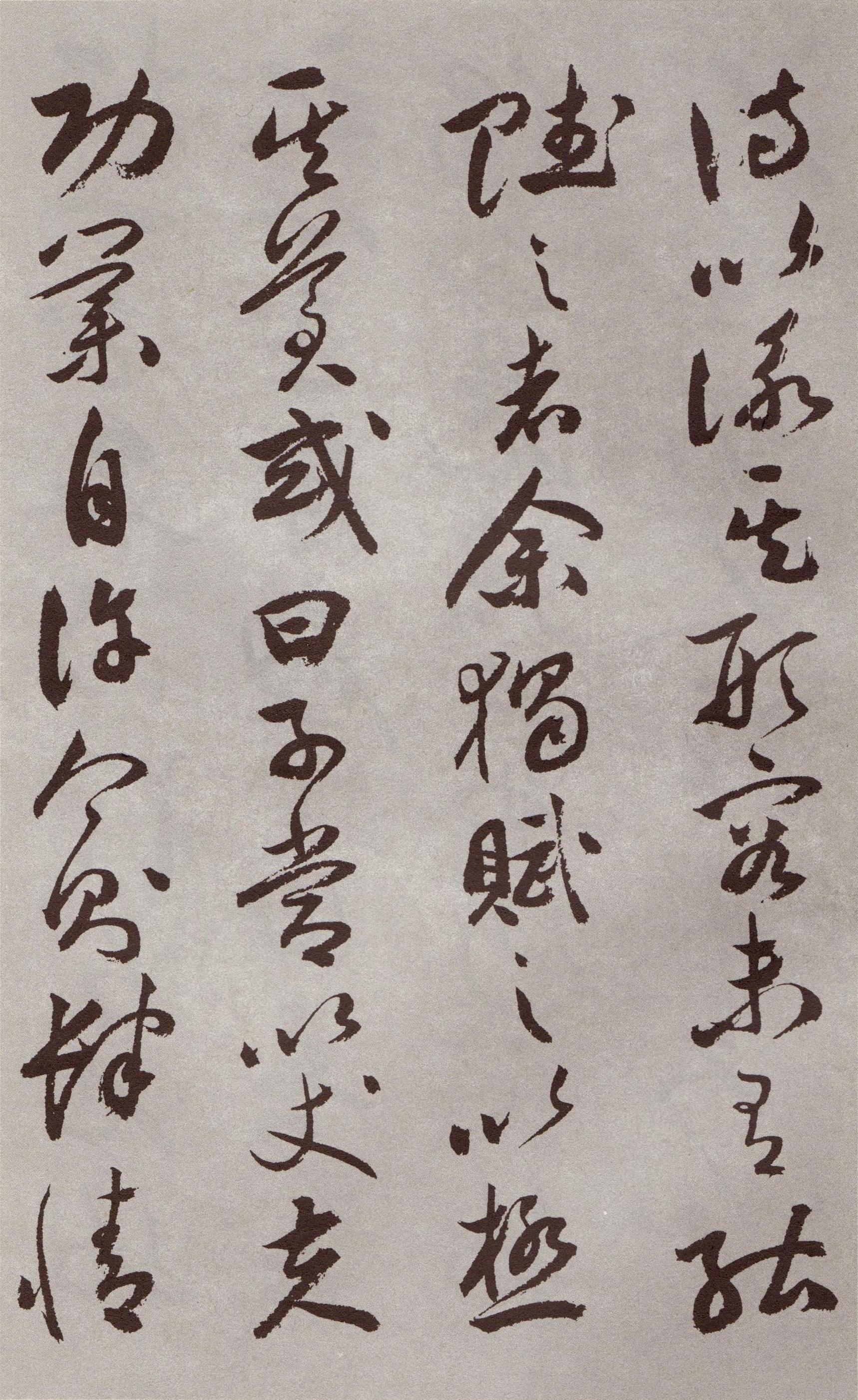 此卷行草書《牡丹賦》,有自題云:“甲申歲春三月望日,過湯氏西園觀牡丹盛開,廷用酒次出紙索書舒元輿牡丹賦,遂書以歸之。允明”,并鈐“晞?wù)堋薄ⅰ鞍秸嬉狻倍 ?芍摼硎菓?yīng)友人所請,書唐舒元輿所撰文學(xué)名篇《牡丹賦》,時在嘉靖甲申(一五二四年)三月十五日,祝氏六十五歲。此卷由故宮博物院收藏,縱30.6厘米,橫529.6厘米。鈐有“昌伯所得”藏印一方。