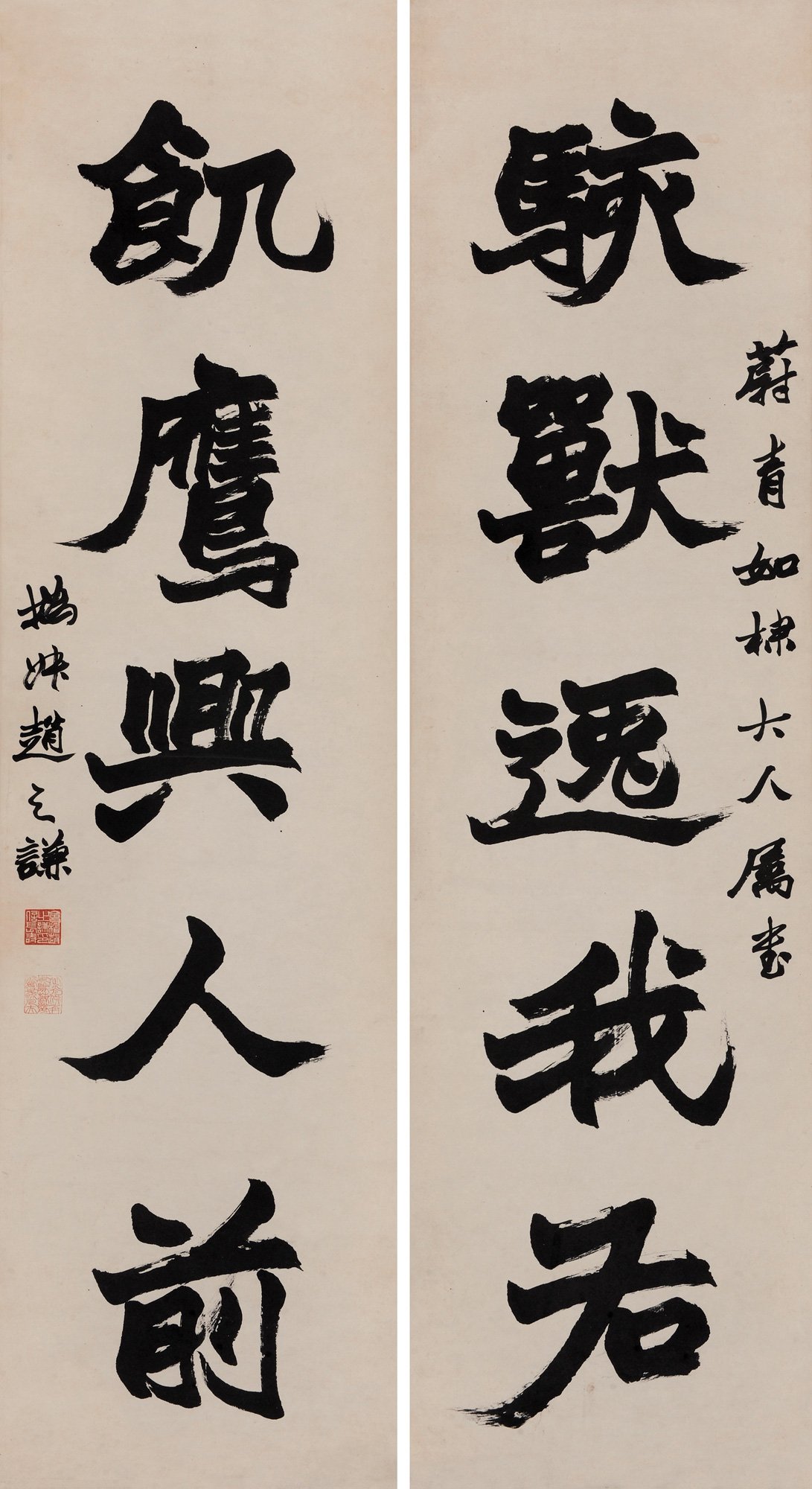 趙之謙《楷書駭獸饑鷹五言聯(lián)》 水墨紙本 166×46cm×2