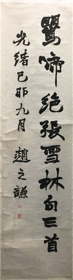 款署:絕張雪林句三首,光緒己卯九月趙之謙。