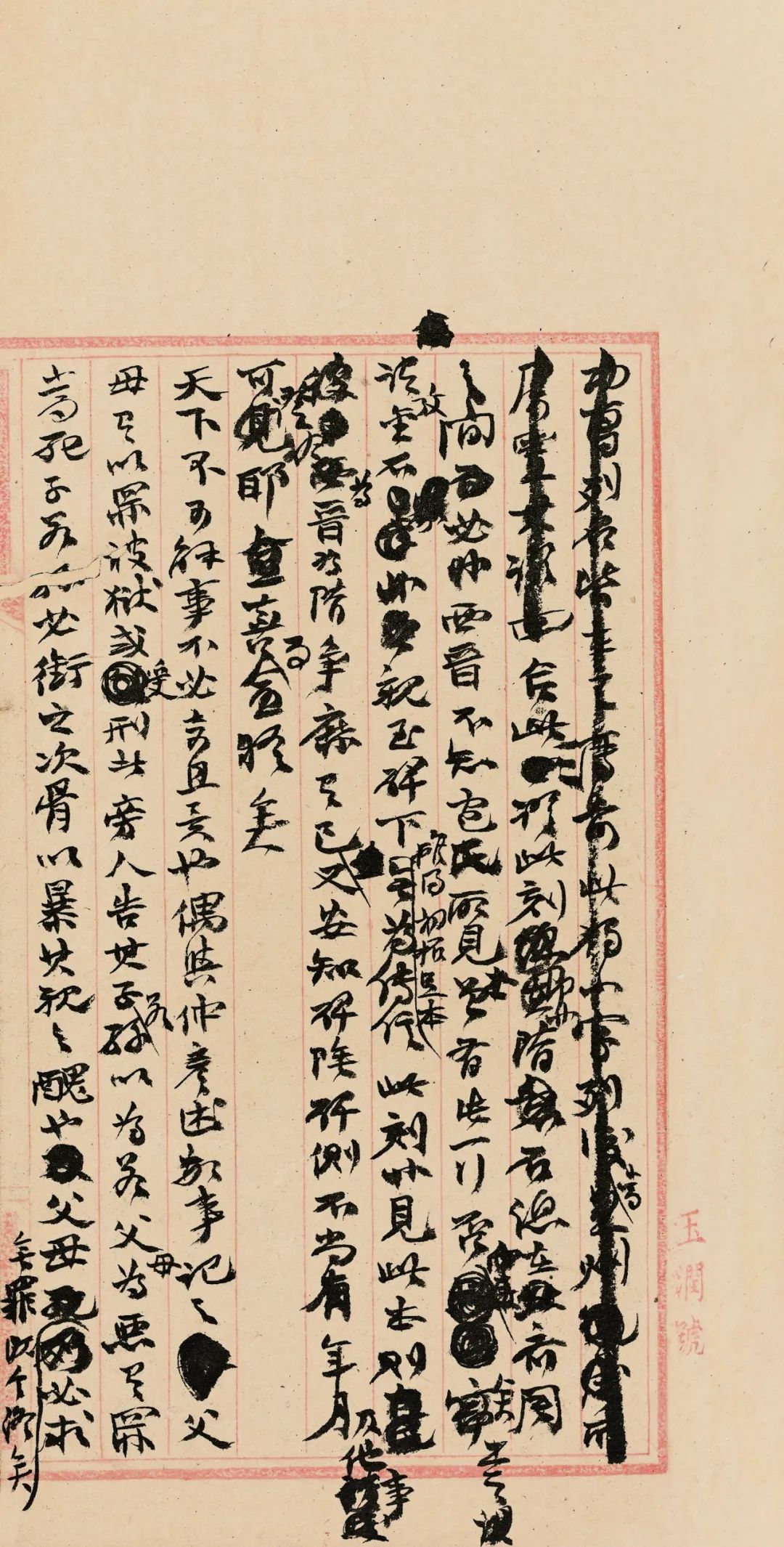 《章安雜說》稿本現(xiàn)藏在中國國家圖書館,紅格箋紙,有“玉潤號(hào)”字樣,不計(jì)空白葉,約四十一葉,八十一面。封面題記:“章安雜說,咸豐辛酉五月”。序言后有趙氏朱記四:“趙之謙”(白文)、“悲盦”(朱文)、“我欲不傷悲不得已”(白文)、“茍全性命”(朱文)。另鈐有沈樹鏞的“韻初審定”(白文)、王蔭嘉的“王氏二十八宿研齋秘籍之印”(朱文)兩方鑒藏印。首頁上鈐有兩方“撝尗”(朱文)、“蔭嘉”(朱文)、“大隆審定”(白文)以及“北京圖書館藏”(朱文)等。這些印記皆爲(wèi)后人鈐蓋,最大的疑點(diǎn)在趙之謙自號(hào)“悲盦”始于同治元年四月六日之后。當(dāng)時(shí),他在福州忽接家書,獲知其妻范璥(敬玉)已于二月二十七日病歿于紹興,年三十五[一九]。其女蕙榛亦卒。家中只剩長女孑然一身,由二族兄趙誠謙代為照顧,并將誠謙五歲的兒子壽佺過繼范氏名下。此時(shí)的趙之謙真是四海無可歸之地,九族無可倚之親,人生窮厄,聞見所無。悲痛之下,改號(hào)“悲盦”,并刻一印,款記“家破人亡,更號(hào)作此”。而題記時(shí)間明確是咸豐辛酉五月八日,這方印顯然是后蓋的。