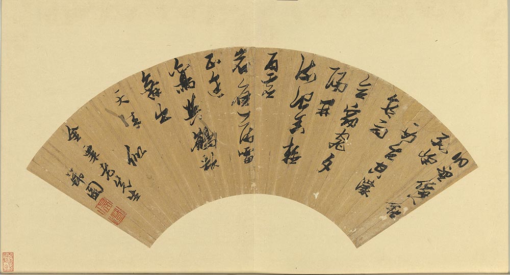 張瑞圖《草書沈佺期岳館五言詩(shī)》扇面 16.7 x51.8cm 臺(tái)北故宮博物院藏