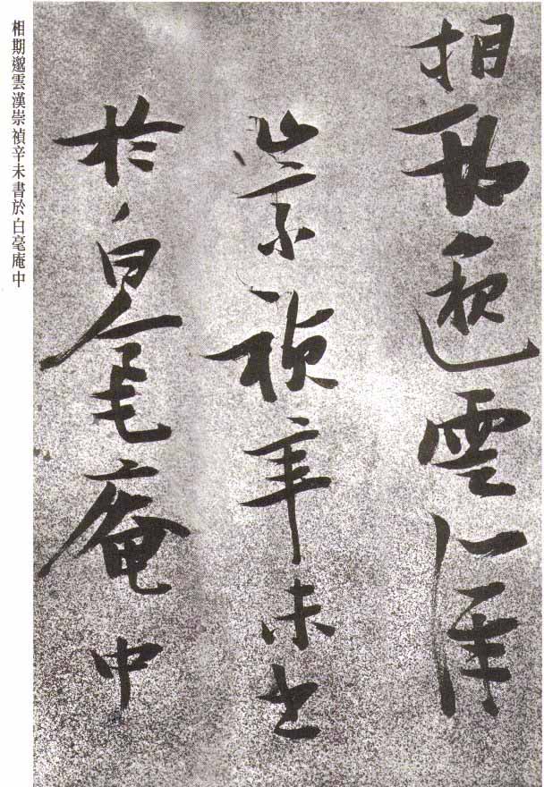 這是張瑞圖傳世的草書名作。在章法上縮小了字距,字與字牽連映帶,上下連貫,同時(shí),又拉開了行與行的距離,使得行間留下長條的空白,連貫流動(dòng)的墨線與疏朗清晰的空白,形成強(qiáng)烈的對(duì)比,使得實(shí)處更黑,虛處更白,布白上極有意味,字的結(jié)構(gòu)用力勁健,加上有折無轉(zhuǎn)的筆勢(shì),一意橫撐,顯得奇絕剽悍,字里字外充滿張力。用筆矯健翻飛,結(jié)體折拗疏宕。