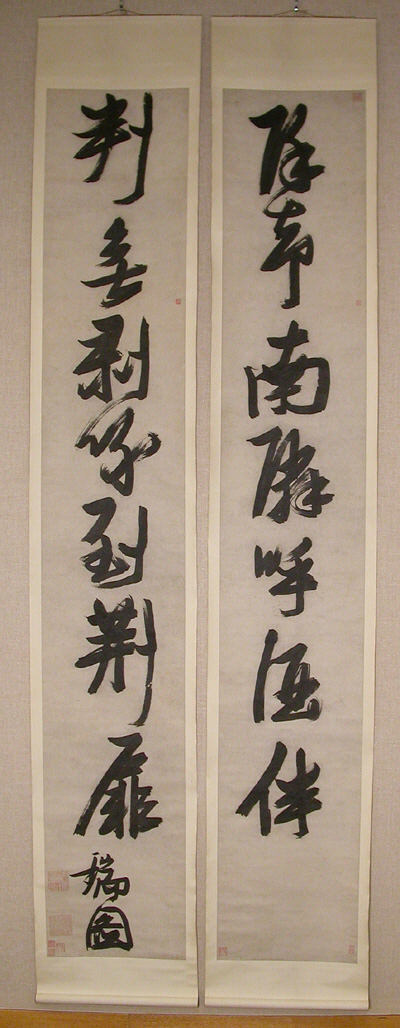 張瑞圖《行書除卻判無七言聯(lián)》軸 紙本 281.9 × 45.7厘米 ×2 紐約大都會藝術(shù)博物館藏顧洛阜(John M Crawford Jr,1913—1988)1988年遺贈