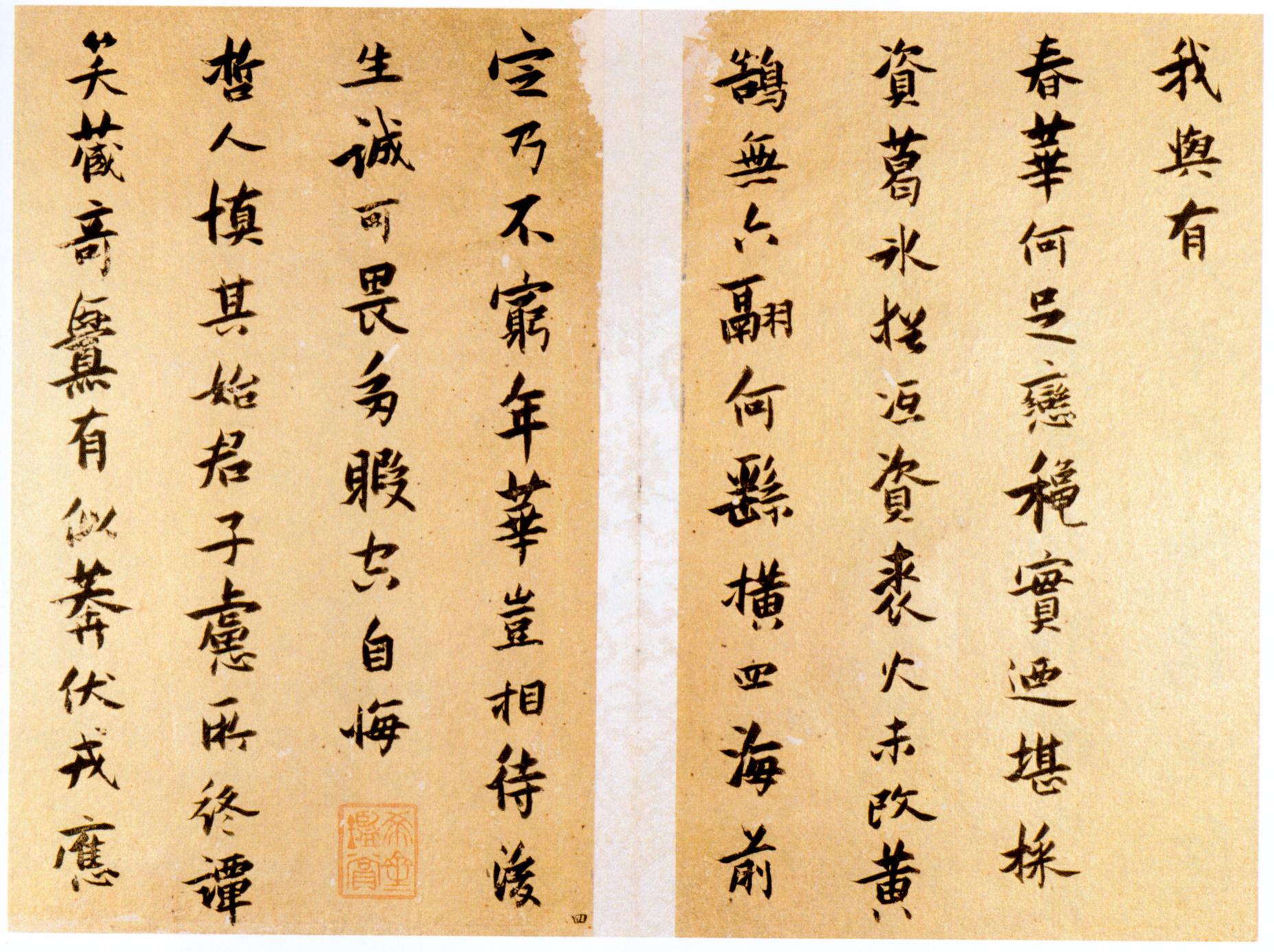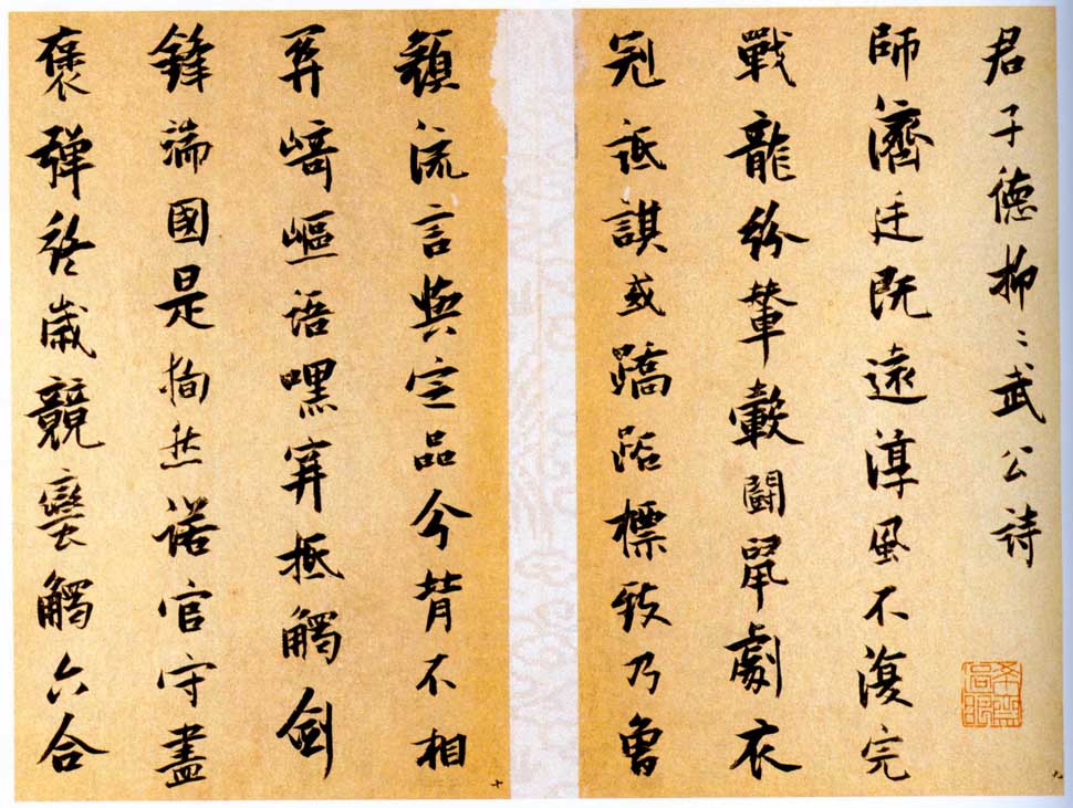 張瑞圖《送康侯楊外孫北上七篇》冊(cè) 金箋 行楷書(shū) 冊(cè)頁(yè) 每開(kāi)20.4×13cm 崇禎十一年(1638)北京故宮博物院藏